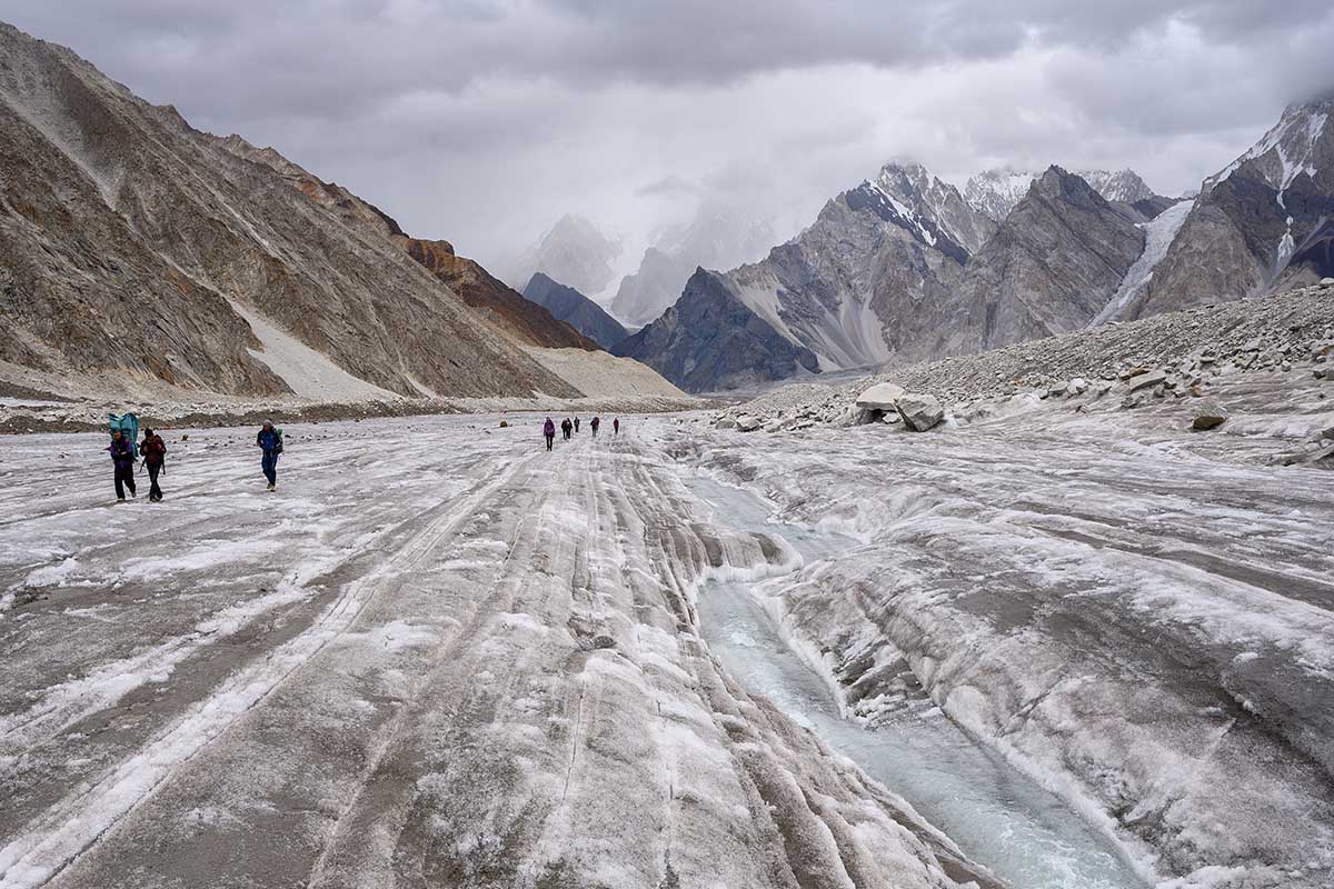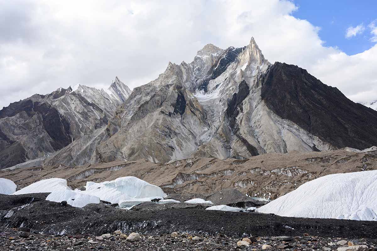 Trekking higher into the Karakoram, we pass Masherbrum on one side and Muztagh Tower on the other. After a stop at Goro I for lunch, we push on to Goro II, a cold and windy campsite located directly on the glacier. From here, trekkers get their first distant glimpse of Broad Peak and the Gasherbrum massif.